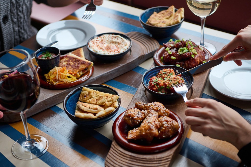 Jolly green Caldero Lounge is in the heart of the handsome Marshall’s Yard shopping centre in Gainsborough. You can’t miss our bright doors and there’s more greenery in the lovely big suntrap outdoor terrace at the front. Inside, there’s a really light and airy atrium space, with clouds of tassel-y lampshades, paintings galore and a rather impressive dark wood panelled bar. The whole site used to be a factory making Marshall’s steam engines, traction engines, tractors and steam boilers and we’re named in honour of this. You could say we’re quite steamed up about the connection.